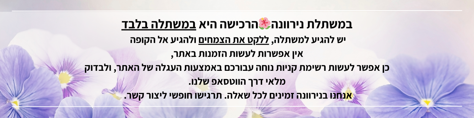 אנו מתמחים בגידול ושיווק של צמחי בית, צמחים לגינה, תבלינים, סחלבים, פרחים עונתיים ועוד. תוכלו למצוא באתר אדניות עץ, כלי גינון, כדים, תערובות אדמה לשתילה, דשנים, קומפוסט, חומרים נגד מזיקים וכל מה שקשור לצמחים בבית ובגן. אנו דואגים להביא לכם שפע של אפשרויות במחירים הכי טובים שיש, תוך הקפדה על איכות הצמח, מתן ייעוץ מקצועי וליווי עד להשלמת הפרויקט.
