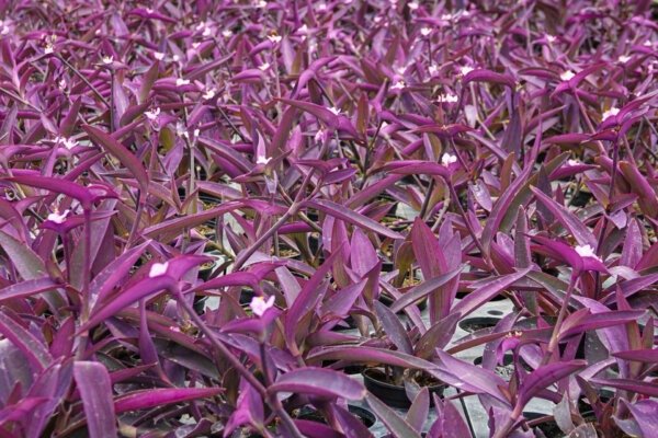 יהודי-נודד ארגמני (סטקראסיה), מעולה לכיסוי שטח, מתאים גם לסלסלה תלויה או למרפסת סגורה. הזמן הכי טוב שלו הוא בקיץ. אם ישנו צל מלא מידי, עשוי לאבד את צבעו הארגמני.