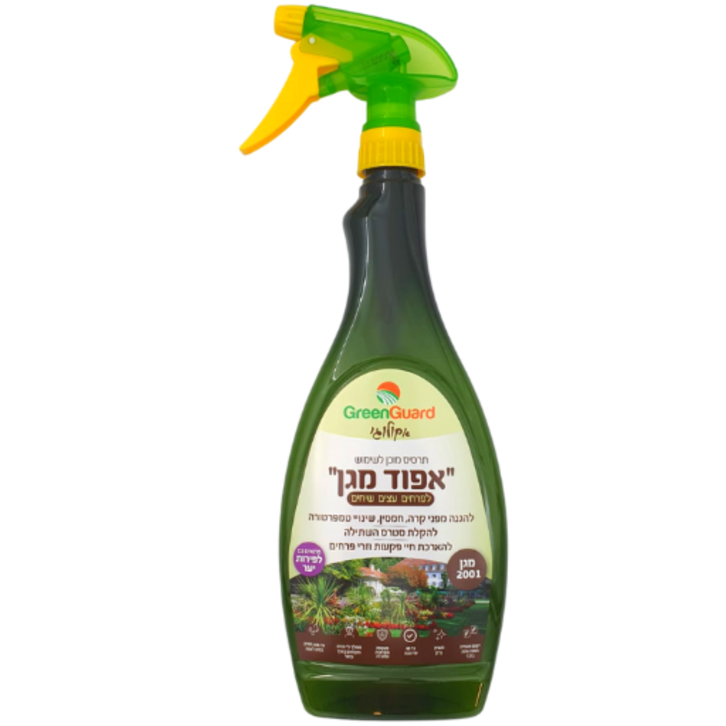 תרסיס “אפוד מגן” מבית Green Guard גרין גארד הוא פתרון חדשני ויעיל להגנה על צמחים מפני תנאי מזג אוויר קיצוניים כמו קרה, חמסין ושינויים חדים בטמפרטורה. הנוסחה המתקדמת שלו יוצרת שכבה מיקרוסקופית עדינה על פני העלים והגבעולים, הפועלת כמו מגן טבעי השומר על הצמח מפני איבוד לחות, פגיעות קור וצריבה משמש.